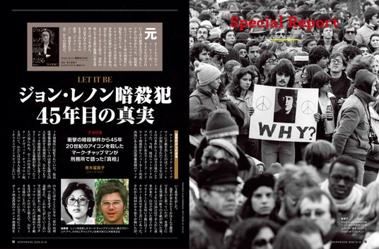 ジョン・レノンが殺害された1980年12月8日は、その時代を体験した人なら誰でも「いつ、どこで、何をしていたか」を覚えているのではないでしょうか。「ライカでグッドバイ」「アメリアを探せ」などノンフィクションの名作で知られる作家・ジャーナリストで、ニューズウィーク日本版創刊時の初代ニューヨーク支局長でもある青木冨貴子さんが、事件発生から45年のタイミングで新たな著作「ジョン・レノン 運命をたどる」(講談社刊)を発表しました。暗殺直後に取材を始め、その後「ある理由」でいったん取材ノートを閉じ、30年以上経って暗殺犯マーク・チャップマンとのアクセスを再開し、事件の「核心」にたどり着くーーその経緯を丹念に追った新著のエッセンスを、12月9日発売号の特集「ジョン・レノン 暗殺の真実」に掲載しました。取材の裏話やジョン・レノンの果たした歴史的役割についての私と青木さんの対談、青木さんの著書でも引用された、チャップマンの経歴と事件の背景を追う80年当時のニューズウィーク英語版の記事も再録しています。(長岡)