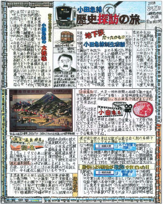 個人部門 最優秀作品賞(文部科学大臣賞) 東京都 台東区立根岸小学校 5年生 浅羽 茉莉さんの作品 「知って!!乗って!!岳南電車イイトコしんぶん