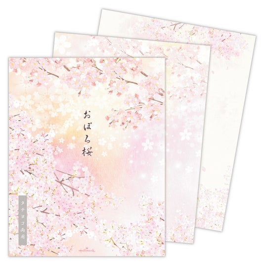 季節のご挨拶状や卒業シーズンのお手紙としても人気が高い桜のレターは、デザインと使いやすさにこだわった2柄を展開。洋柄の「サクラミュージック」は、存在感ある一本桜をモチーフにした華やかなデザインです。和柄の「おぼろ桜」は、縦横どちらにも使える無地タイプ。敷居が高いと感じられがちな和柄レターを、幅広く使いやすい仕様にアップデートしました。