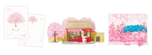 一本桜が映える洋柄レターと、縦横自在な和柄レター、さらに立てて飾れる春のグリーティングカードなどを発売。節目のシーンに華やぎを添えます
