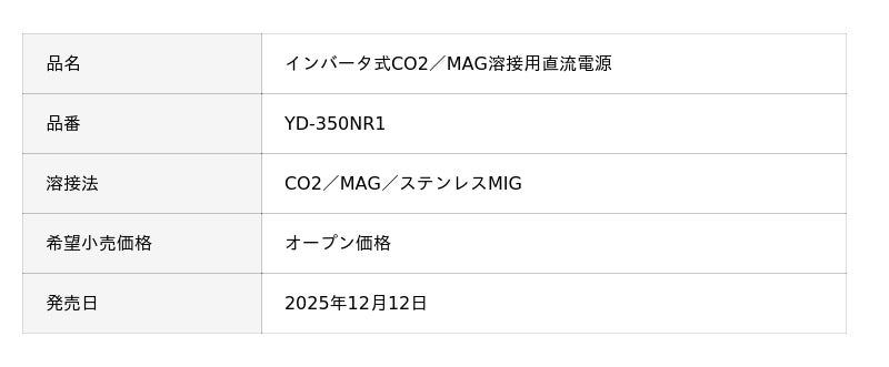 ▼[プレスリリース]フルデジタルCO2/MAG溶接機「YD-350NR1」を発売(2025年12月9日)