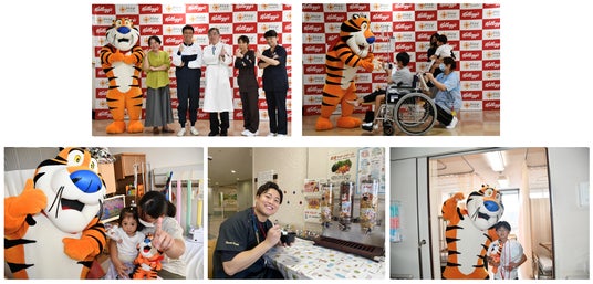 ケロッグは、食糧問題について考え、解決に向けて行動を起こす「世界食糧デー月間」に合わせ、10月6日(月)に認定NPO法人キープ・スマイリング(以下、キープ・スマイリング)と連携し、ケロッグ高崎工場を構える地元のJCHO群馬中央病院へ「スペシャル応援パック」を贈呈しました。「スペシャル応援パック」は、ケロッグの手軽で栄養バランス満点のシリアルと、ケロッグオリジナルのお絵かきノートと色鉛筆、さらにキープ・スマイリングが提供する「付き添い生活応援パックライト」をセットにしたもので、社員の手書きメッセージを添えて、高崎工場の社員が心を込めて梱包を行いました。贈呈式当日には、ケロッグのキャラクター「トニー・ザ・タイガー」も登場。小児病棟を行脚しながら入院中の子どもたちにエールを送り、プレゼントを手渡ししました。
