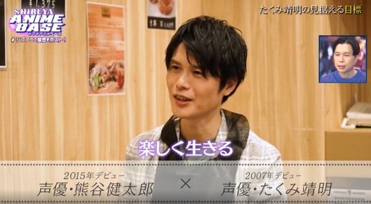 一方たくみは「楽しく生きる」と話し、「声優以外に楽しいと思えるものが見つかったら辞めるかもしれない。でも今はそれ以上のものがないから声の仕事や舞台を続けている。最終的には“楽しかった”と思って死にたい。まだまだこの世界で生きていたいし、もっと上手くなりたい。熊谷くんとも共演作を増やしたいし、尊敬する先輩方と面白いことをしたい。そのための努力は続けたい。声優としてだけじゃなく、人間・たくみ靖明として勝負できるようになれたら」と語り、熊谷も「わがままを言うなら、ずっとご一緒させてください」と深く頭を下げました。
