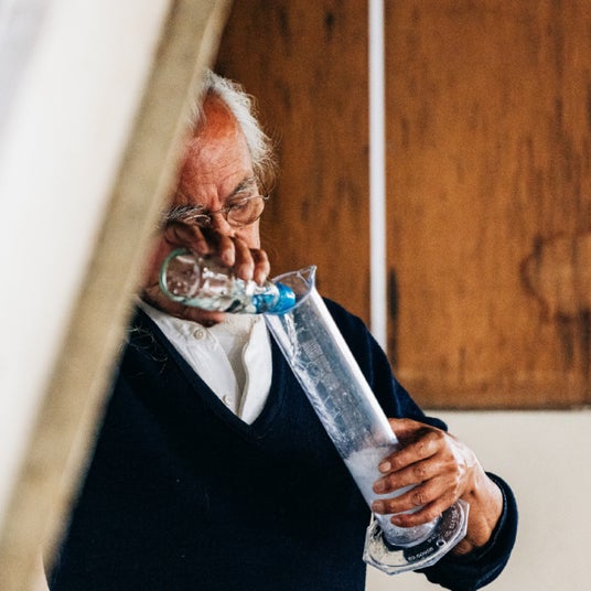 2.選定とブレンドにワイナリーの知識と技術を応用製造を手掛けたのは、多くのワイナリー立ち上げや醸造指導に携わる醸造家・増子敬公さんです。増子さんは香り高さや満足感、食事との相性を基準に、カベルネ・ソーヴィニヨン、シャルドネ、ナイアガラを厳選しました。ジュースづくりの要となるのは、ワイン造りと同じく繊細な「ブレンド」。甘み・酸味・コク・渋み・果実味の調和を見極め、赤は深みに華やかさを、白は爽やかさに果実味を重ねることで、調和のとれた味わいに仕上げています。