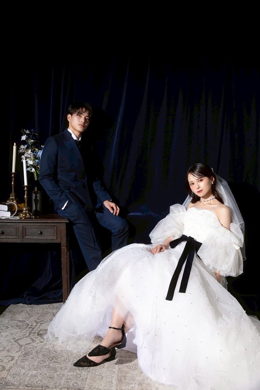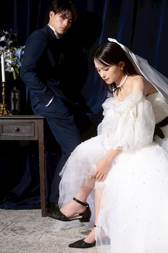 この度、カシェットスタジオを一部リニューアルOPEN。スタジオとコントラストの演出で、重厚かつドラマティックな非日常的世界観を実現。 新作ドレスとスタジオのディテールまで愛おしい統一美をご提供。
