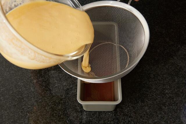 でもこのレシピなら、なんと「濾し器不要」! レシピ通りに材料を混ぜて、ザルで濾しながら型に流し入れれば大丈夫。気をつかう火の入れ方も、オーブンでのんびり湯煎焼きにすれば失敗知らずです。