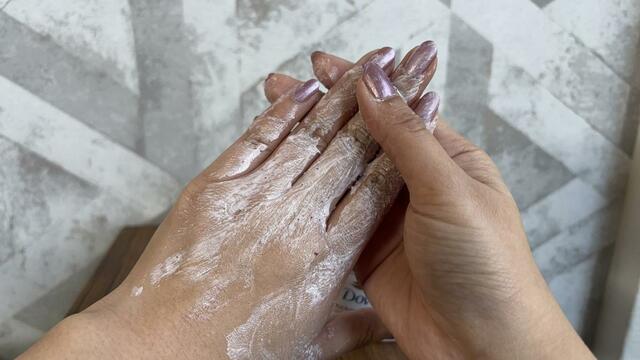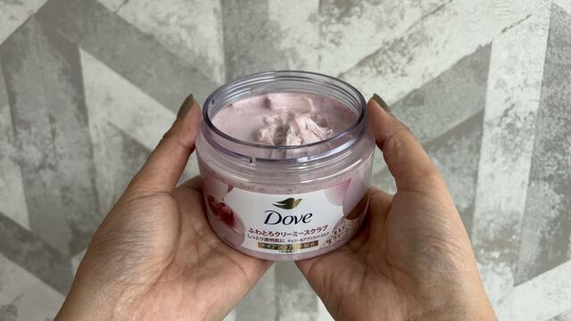 ダヴの「ふわとろクリーミースクラブ」は、肌に優しい使い心地のスクラブ。伸びも良いので、さくらんぼ大くらいの量で手から肘くらいまでケアできます。
