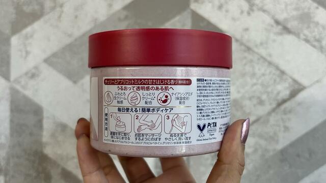 購入した「チェリー&アプリコットミルク」は、甘めの香りで、毎日バスタイムの時に使って癒されています。使用後は数時間くらい肌の上で柔らかく香り続けるので、お出かけの前に使うのもありかも!