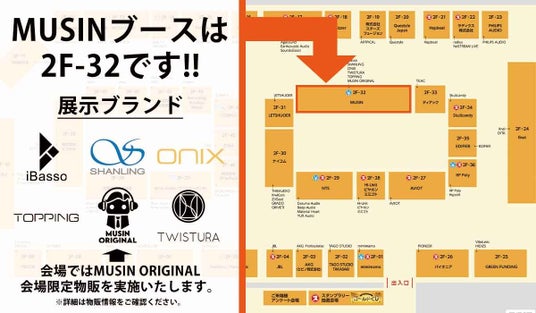 MUSINブースでは、株式会社MUSINが取り扱う各ブランドの最新オーディオ製品の展示や、会場限定物販等を予定しております。