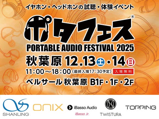 株式会社MUSINは、2025年12月13日(土)~14日(日)に開催される『ポタフェス2025冬 秋葉原』にて、最新のオーディオ製品の展示をメインとした『MUSINブース』を出展いたします。
