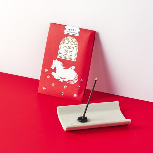 香りは全部で4種類。馬の性格に着想を得た、それぞれ異なるデザインの午のイラストとメッセージつき。手軽なお年賀やお土産にも最適で、香立てが付属しているため、初めてのお香にもおすすめです。