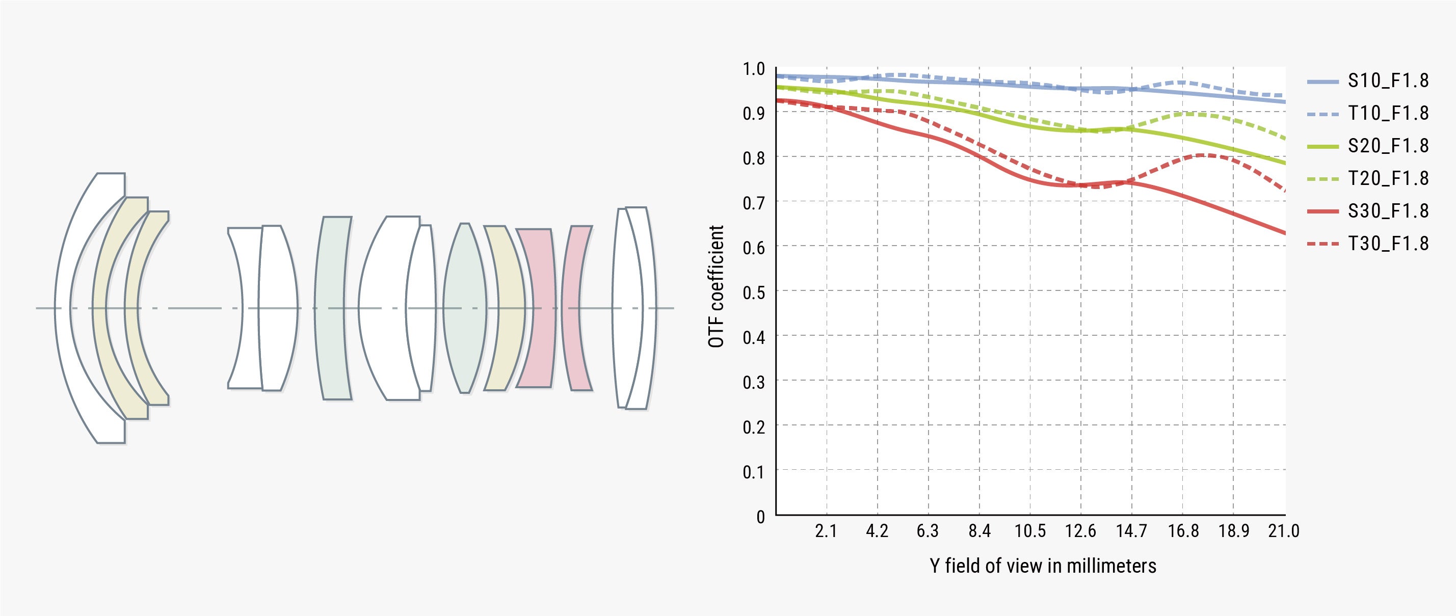 非球面レンズやEDレンズを豊富に採用したレンズ構成により、細部まで忠実に描写し、色収差や歪曲を抑えたクリアな画質を実現します。6000万画素の高画素センサーを搭載したカメラにも対応できる高い解像力を備えています。