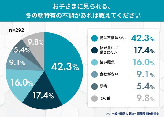 → 4割以上は不調なしという結果に。一方で、冬特有のだるさや眠気を抱える子どもも多く、体調の個人差が大きいことがうかがえます。