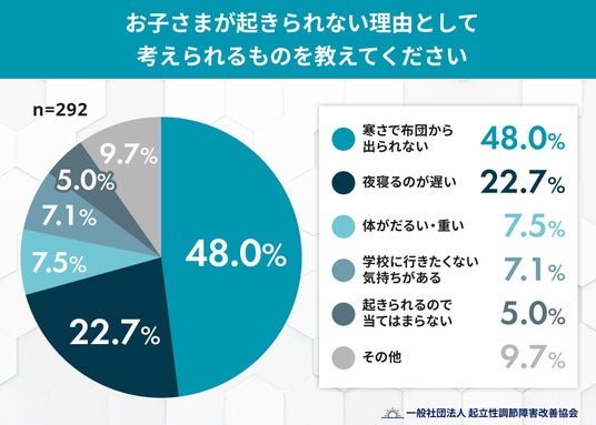 - 冬に「起きられないことが増える」家庭は82.9%- 起きられない理由の1位は「寒くて布団から出られない」で約半数を占める