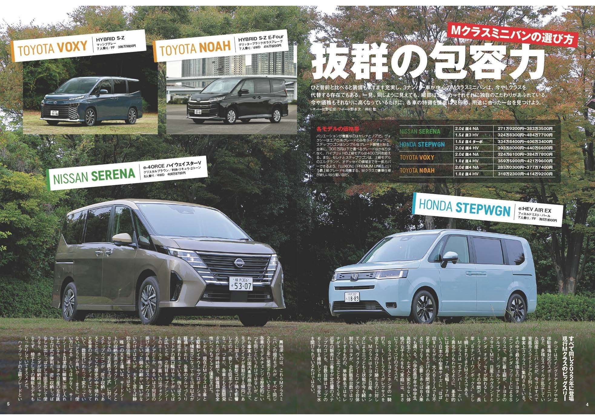 ミニバンのど真ん中と言えるMクラスの御三家、日産セレナ、ホンダ・ステップワゴン、トヨタ・ヴォクシー/ノアを、細部に渡って横並び比較しました。