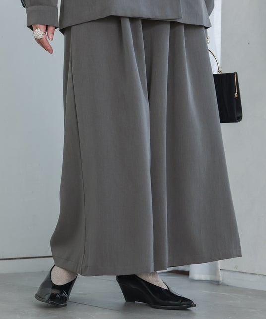 ふんわり広がるシルエットがスカート見えする、上品ボリュームのガウチョパンツ。ウエストベルト下に施したタックが、気になるお腹まわりを自然にカバーしスタイルアップを叶えます。程よい厚みでキレイ見えするツイル生地で、カジュアルにも馴染み、どんなスタイルも品の良い印象にしてくれます。
