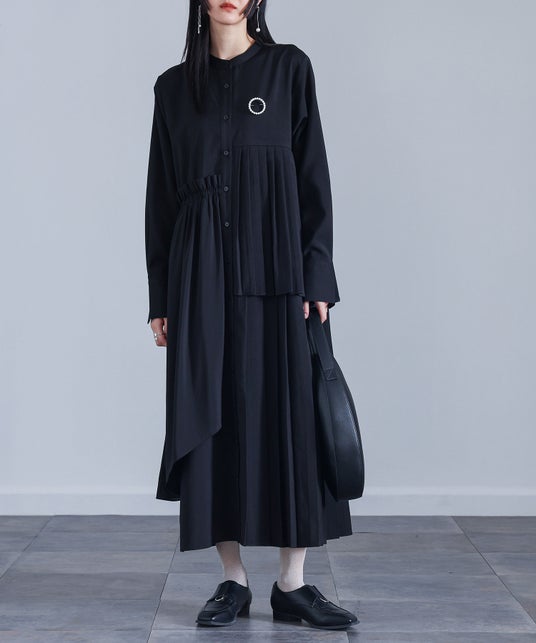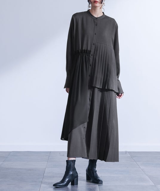 kOhAKU異素材アシンメトリープリーツワンピース