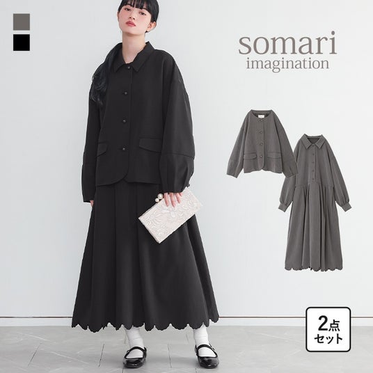 somari imaginationランタンスリーブジャケット裾スカラップワンピースセットアップ商品番号:15do0pb
