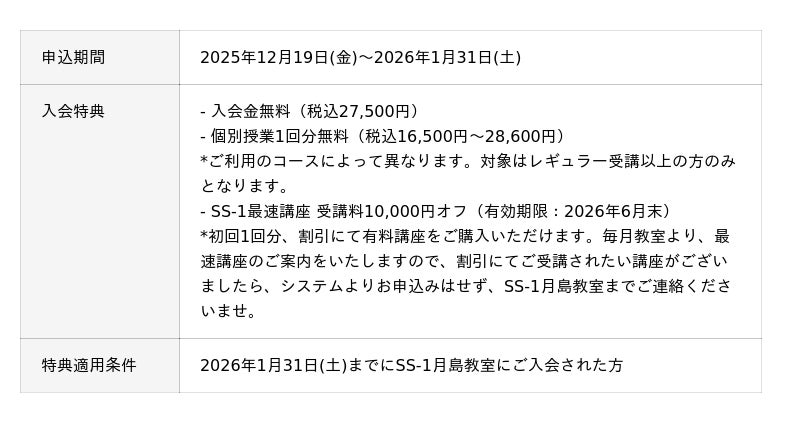 【1月中旬開校】月島教室 開校直前キャンペーンを開催中!