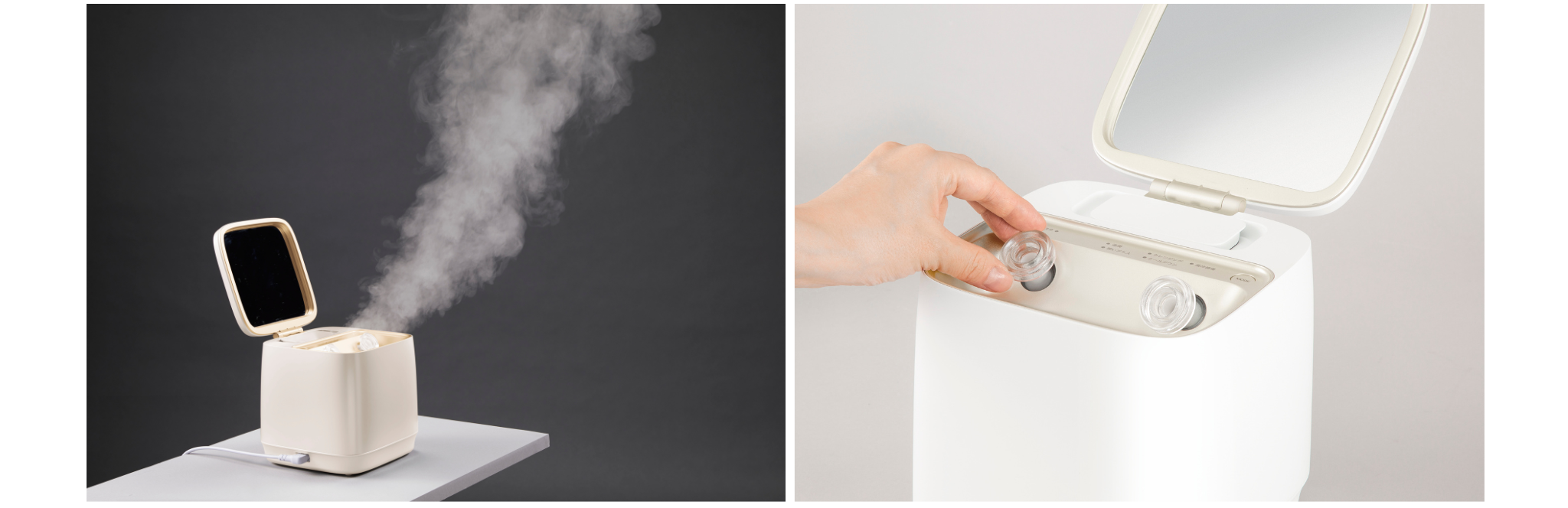 「速潤デイリースチーマー」は、ツインノズルでたっぷりのスチームを噴射し、顔全体をしっかり包み込みます。スタート後約3秒で使うことができ(※1)、従来品の約半分の時間(※2)となる6分間で、毎日続けやすい「速潤モード」(※3)を搭載。お手入れも簡単なので、無理なく続けられるのが特長です。