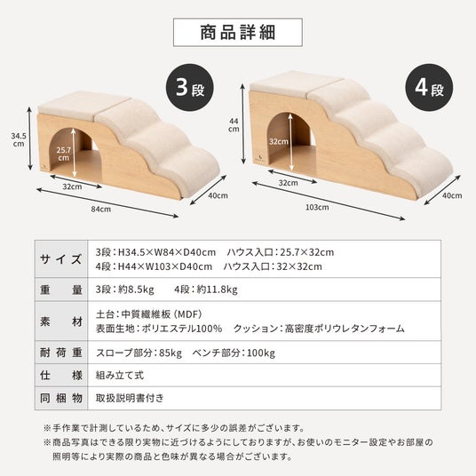 4段:しっかり高さを確保したい家庭向け3段:小型犬でも無理なくソファやベッドへアクセスできる寸法に最適化
