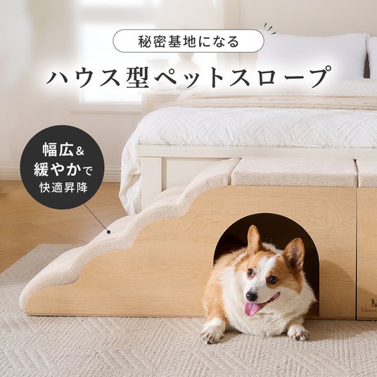 段差をやさしくサポートするスロープとしてはもちろん、下部のスペースは愛犬のくつろぎハウスとしても活用可能。