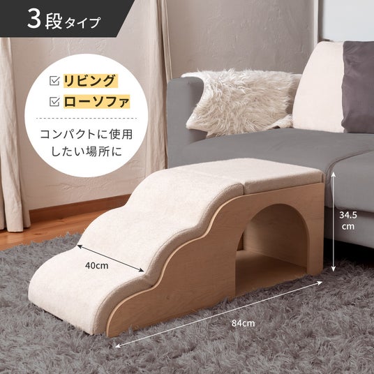 今回新たに登場した3段タイプは、その使いやすさはそのままに高さ・段差・奥行きを小型犬向けに最適化したコンパクトモデル。