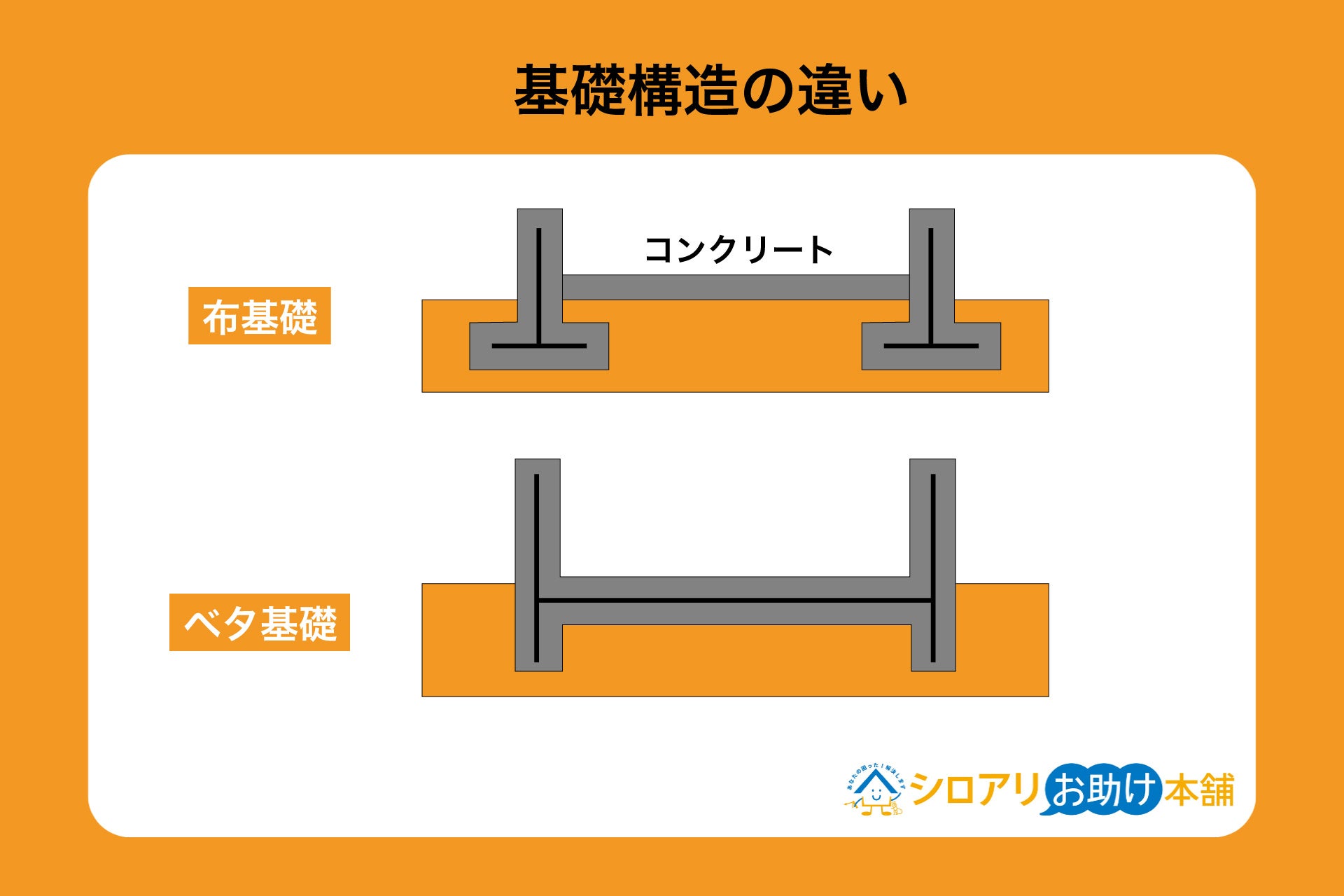 布基礎は柱や壁といった構造躯体部の直下にだけ鉄筋コンクリートを打ち込むのに対し、ベタ基礎は床下全体がコンクリートで覆われる工法です。構造上、シロアリの侵入を防ぎやすいと考えられていましたが、今回の調査でベタ基礎の住宅もシロアリ対策が必要と明らかになりました。