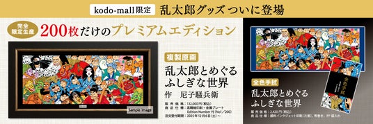 書籍「乱太郎とめぐるふしぎな世界 おもしろ古典入門の段」の色彩豊かな表紙のデザインを高精細印刷で複製し、EditionNumberプレート(1~200)を付けた限定商品となります。