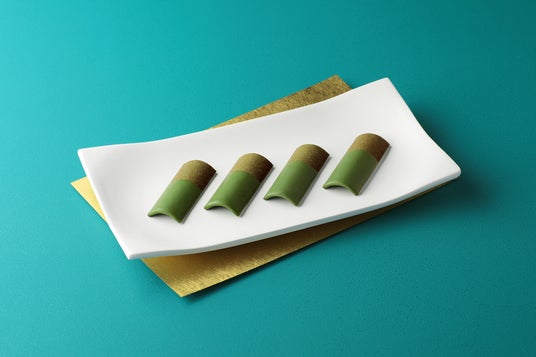 京都を代表する宇治抹茶を八ッ橋本体とコーティングチョコレートに使用した、和と洋の融合が楽しめる八ッ橋です。うすく焼き上げた宇治抹茶風味の八ッ橋を、芳醇な宇治抹茶コーティングチョコレートで仕上げました。カリッとした食感の八ッ橋から広がる宇治抹茶の爽やかな風味と、くちどけの良い抹茶コーティングチョコレートの濃厚なコクが絶妙なバランスを生み出します。