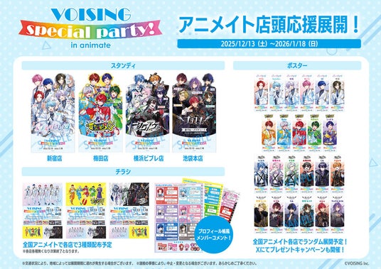 株式会社アニメイトは、2025年12月13日(土)~2026年1月18日(日)まで「VOISING special party! in animate」を全国アニメイト・アニメイト通販にて開催いたします。