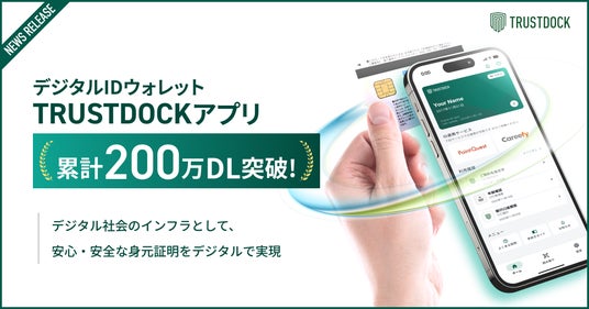 株式会社TRUSTDOCK (東京都中央区、代表取締役:千葉 孝浩) が開発・提供するデジタルIDウォレット「TRUSTDOCKアプリ」が、2025年10月20日 (月) 、累計200万ダウンロードを突破しました。