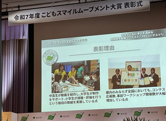 一般社団法人日本金融教育支援機構(所在地:東京都千代田区 共同代表理事:平井梨沙、阿部奈々 以下「当機構」)は、主催する金融教育イベント「FESコンテスト」が、東京都が推進する「令和7年度 こどもスマイルムーブメント大賞」子供部門において優秀賞を受賞したことをお知らせいたします。