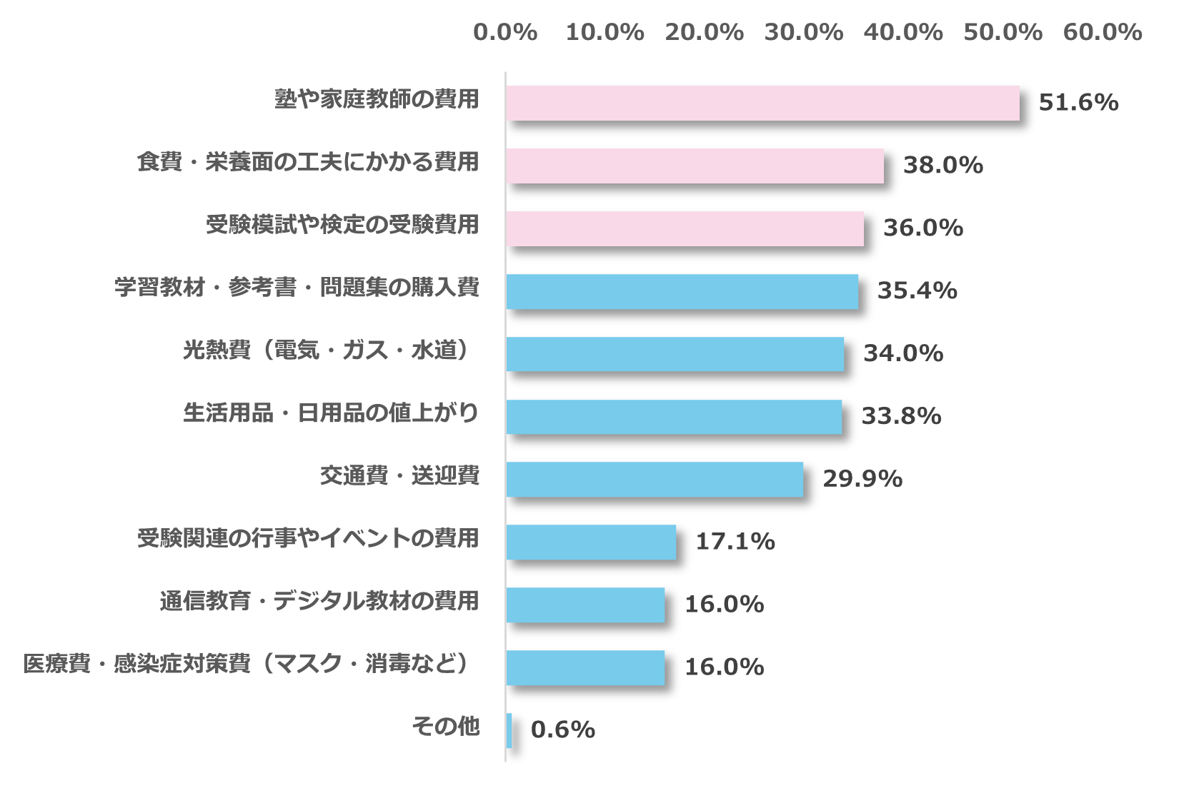 物価高騰で最も負担が増えたのは「塾・家庭教師費(51.6%)」