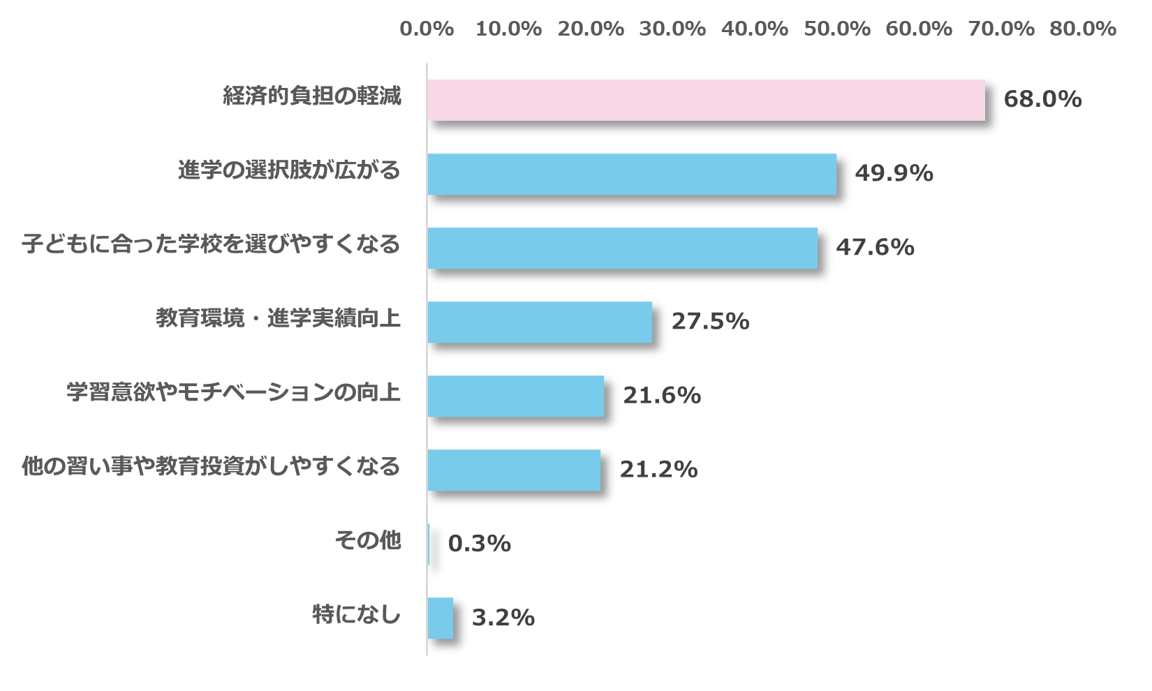 経済的な負担が軽減されたことで、これまで候補に入れにくかった学校も視野に入るようになり、志望校選びに前向きな変化が見られます。