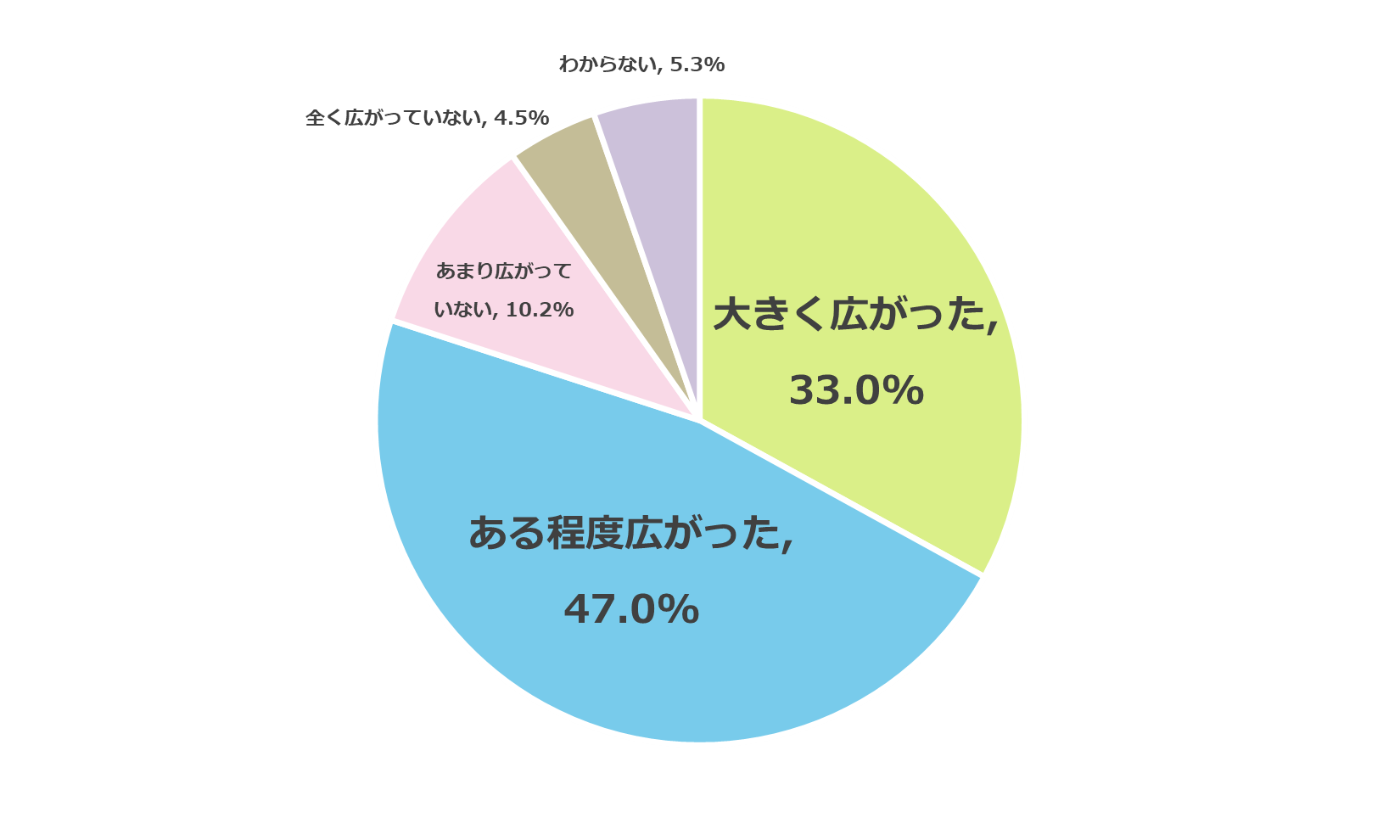 私立高校の授業料が実質無償化になることで、志望校の選択肢は広がったか質問したところ、80.0%が「広がった」(大きく広がった:33.0%、ある程度広がった:47.0%)と回答しました。
