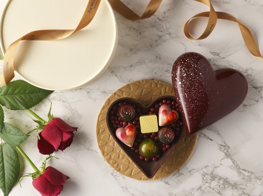 チョコレートは、寄り添うような優しさをイメージしたペールグリーンのボックスに詰めてご用意します。また、6個入りはチョコレート製のハート型ボックスに詰め込んだ「アムール・ド・ショコラ」も登場します。ロマンティックなギフトとして、大切なひとときを彩ります。