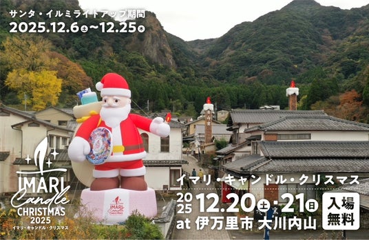 鍋島藩窯クリスマスイベント実行委員会(佐賀県・伊万里市・伊万里鍋島焼協同組合)は数々の話題のイベントを手がけるクリエイター「アフロマンス」率いる「Afro&Co.」とコラボし、2025年12月20日(土)・21日(日)の2日間、 「イマリ・キャンドル・クリスマス2025」を伊万里市大川内山 (佐賀県伊万里市大川内町乙1806)で開催します。