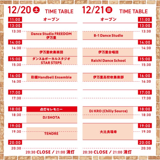 「イマリ・キャンドル・クリスマス 2025」ステージイベント ※出演時間順