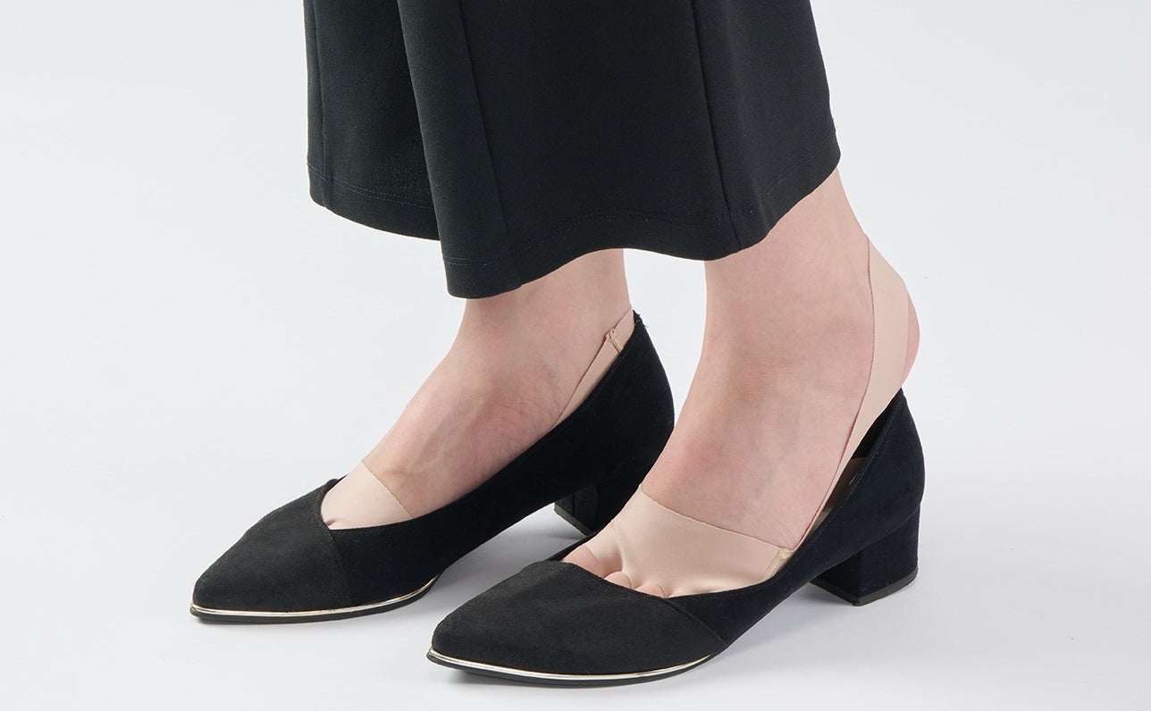 約0.5mmの薄手フリーカット素材を使い、履く靴を選びません。かかとの内側部分は滑り止め素材を使い、サポーターが脱げにくくなっています。