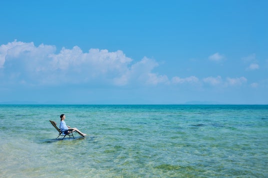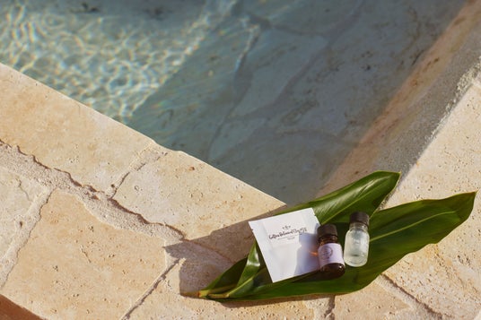 バレルサウナで温まった後は、小浜島の自然に馴染む「琉球石灰岩」を使用した水風呂で身体を冷やします。水風呂には背もたれを配しているので、目の前には碧い海や空の絶景が広がります。冷水浴を終えたら、海上に浮かぶ外気浴チェアへ移動。まるで自然に没入するような、海風や波の音に包まれます。サウナ体験後は月桃由来のスキンケアアイテムで、肌を優しく労わることができます。