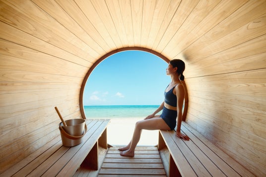 サウナ室は、大きな窓が特徴的なバレルサウナを採用。碧い海と空を眺めながら身体を温めることができる、絶景を満喫するバレルサウナです。室内ではセルフロウリュを行うことができ、小浜島の風土にちなんだ「月桃」「琉球松」「プルメリア」から好みのアロマを選んで、発汗を促します。また小浜島の伝統工芸である「藍染め」で仕上げたサウナハットとサウナマットを用意しているので、持ち物の手軽さも魅力の一つです。