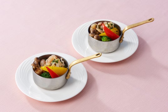 さらに、美しい断面が目を惹く「丸ごといちごサンドウィッチ」、バター香る生地と甘酸っぱいいちごのハーモニーが広がる「いちごクロワッサン」、そして旨みが凝縮した「千葉県野菜と魚介のアヒージョ」を別皿にてご用意いたします。