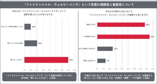 「ファイナンシャル・ウェルビーイング」という言葉は約7割が未認知であることに対し約8割が「重要・やや重要」と回答。