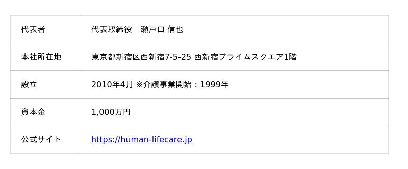 ●ヒューマンライフケア ウェブサイト:https://human-lifecare.jp