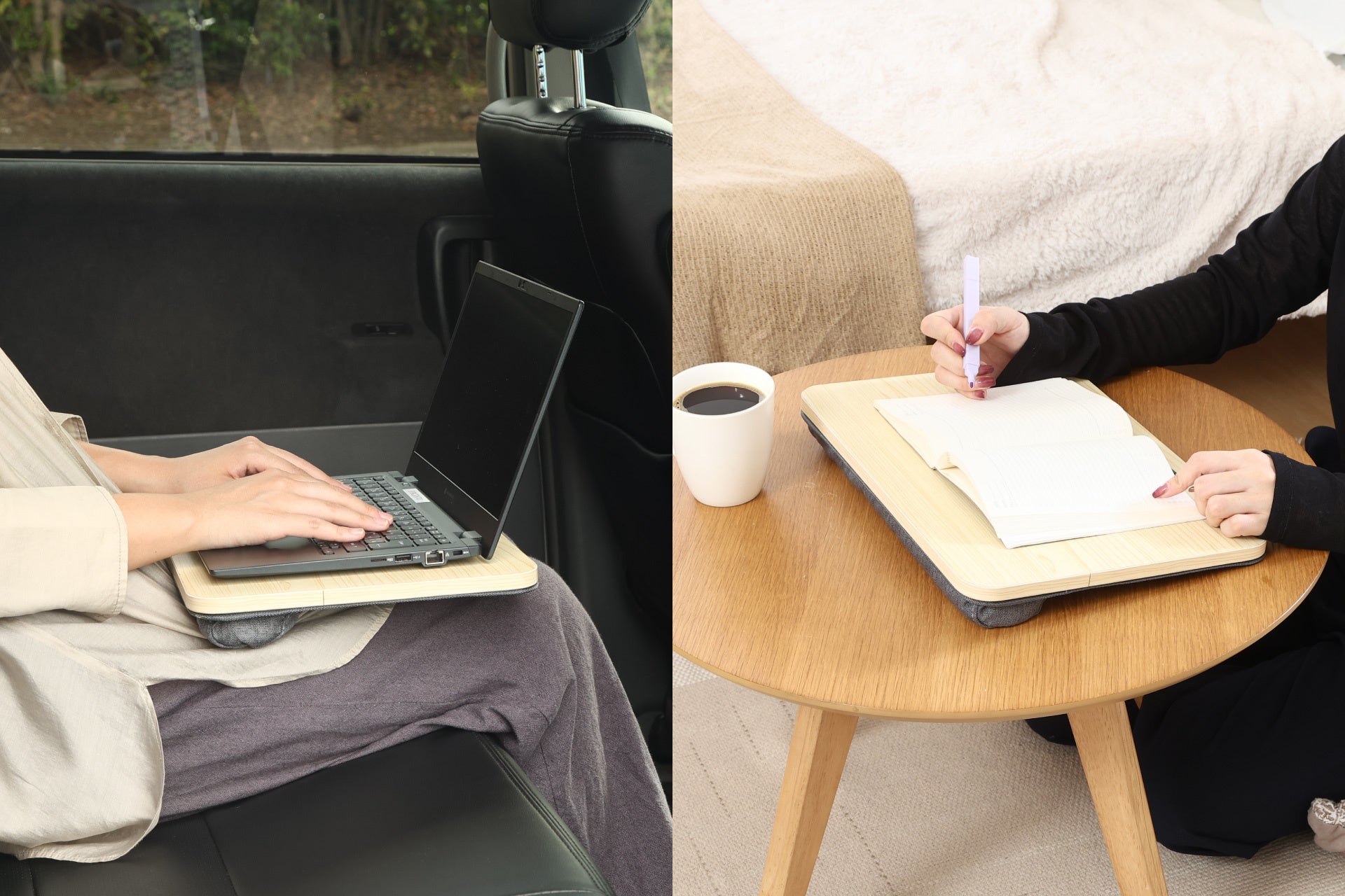 シリーズ累計出荷額1億円を突破した「どこでも使える」シリーズから、より移動性が高く、軽量で扱いやすい膝上タイプ が新たに登場。ソファやベッドでくつろぎながら、書き物・読書・PC作業ができるほか、デスクがない場所でも姿勢を崩さず作業できるアイテムです。