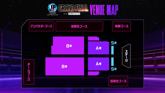 「ストリートファイターリーグ: Pro-JP 2025 プレイオフ」も開催が間近となりましたが、「プレイオフ」勝利チームが進出する決勝大会「ストリートファイターリーグ: Pro-JP 2025 グランドファイナル」の会場マップおよびブース出展企業・チームの情報を一部公開いたします。