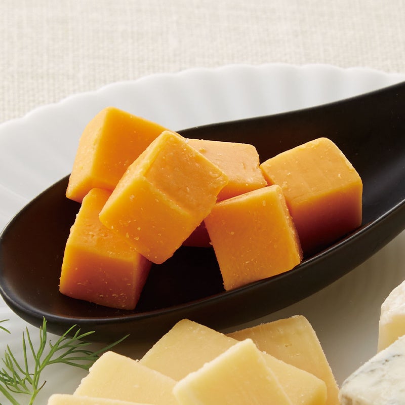 フランス産ミモレットチーズを食べやすいダイスカットに。6ヵ月熟成で程よいコクと甘みがあり、そのままつまんだり、サラダやパスタに加えたりと幅広く活躍します。