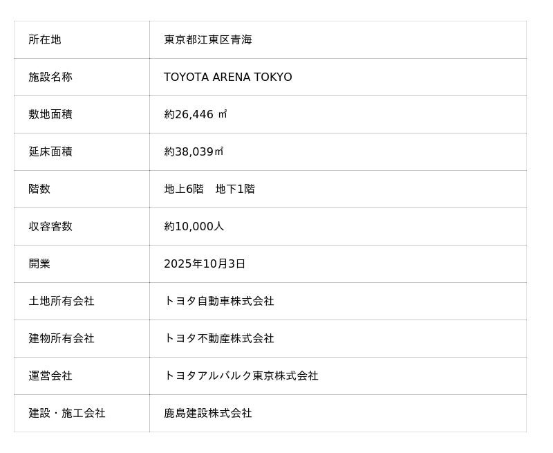 TOYOTA ARENA TOKYO公式WEBサイト:https://www.toyota-arena-tokyo.jp/