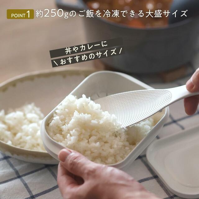 約250gの炊き立てご飯を冷凍できる大盛りサイズで、しっかり食べたい日のごはんも余裕で保存できます。